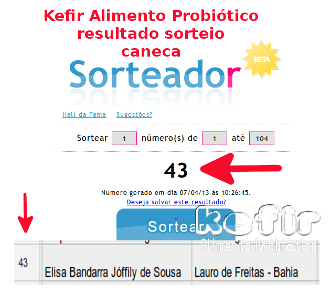 7 - O resultado do sorteio será divulgado dentro desta página do Blog, e posteriormente na Fan Page do Kefir Alimento Probiótico no Facebook.