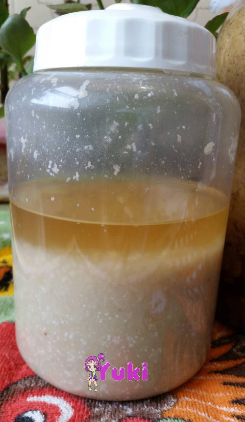 Cozer o arroz glutinoso no vapor até ficar macio, aguarde esfriar e misture os demais ingredientes, coloque em recipiente transparente para acompanhar as mudanças que ocorrerão, é muito interessante!